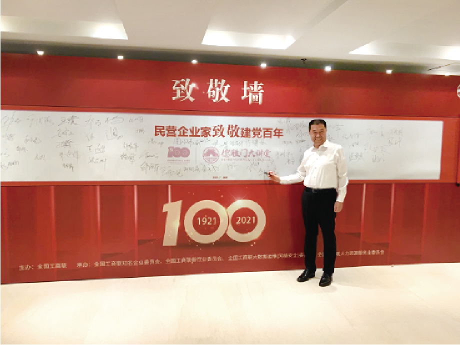 ? ? ? 活動(dòng)開場(chǎng)播放的視頻中,近百名民營(yíng)企業(yè)家共同向中國(guó)共產(chǎn)黨成立100周年致敬,與會(huì)人員共同感受了民營(yíng)企業(yè)家對(duì)黨的深深敬意。